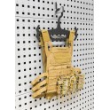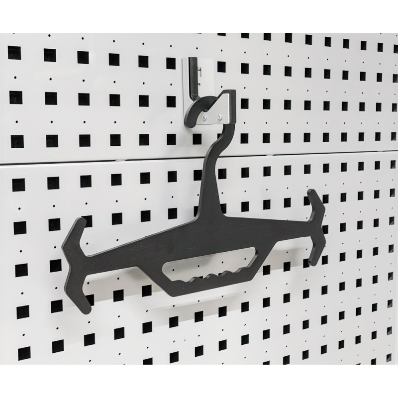This holder is designed for hanging tactical vests. The holder is made of 8 mm thick, powder-coated sheet metal.